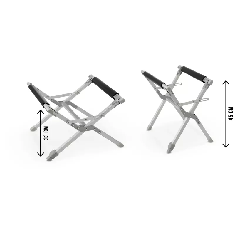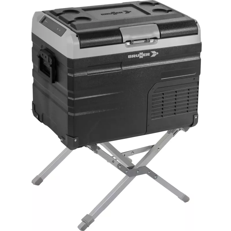 Il Brunner Cooler Up è un telaio portafrigo pieghevole, realizzato con robusti tubi in alluminio quadrati, ideale per sollevare il frigorifero dal suolo e migliorare l'ergonomia durante l'utilizzo. Dotato di piedini d'appoggio con protezione per il terreno e profili di supporto orizzontali imbottiti, garantisce stabilità e sicurezza. Una delle gambe è regolabile in altezza, permettendo di adattare il telaio a superfici irregolari. Il design pieghevole consente un facile trasporto e stoccaggio, rendendolo perfetto per il campeggio e le attività all'aperto.