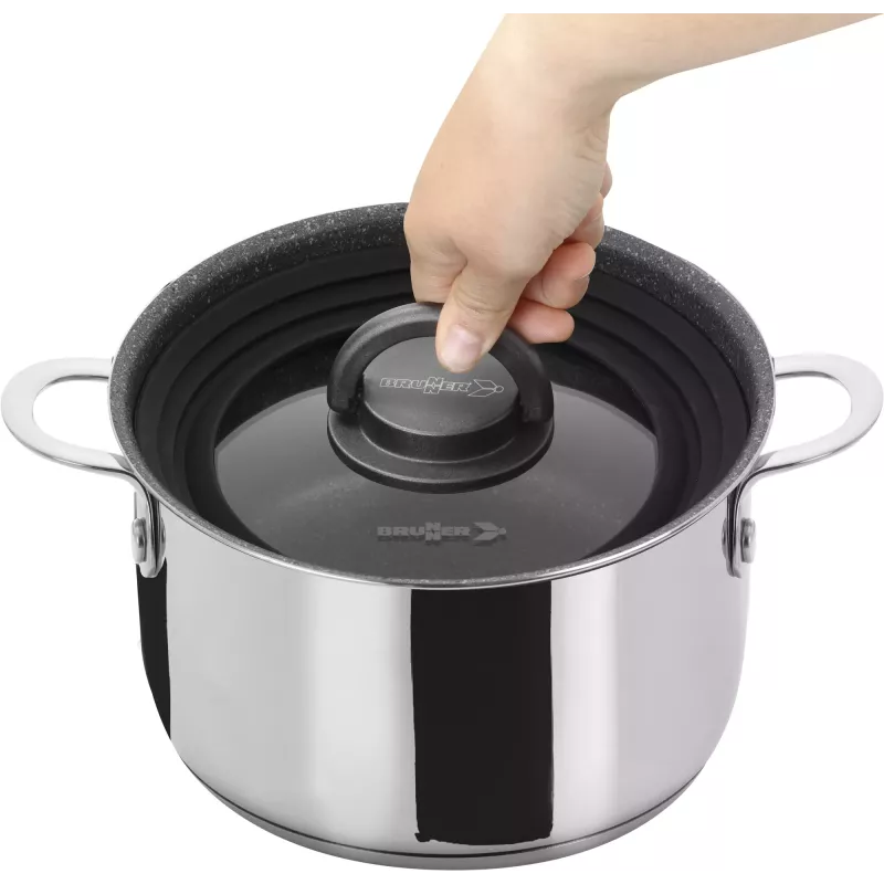 Il Brunner Popote Academy NG 7+1 Ø 22 è un set di pentole completo e versatile, ideale per cucinare durante le tue avventure all'aperto. Realizzato in acciaio inox di alta qualità con rivestimento antiaderente, offre resistenza, durata e facilità di pulizia. Il design impilabile consente un facile stoccaggio e trasporto, rendendolo perfetto per il campeggio e le attività all'aperto.