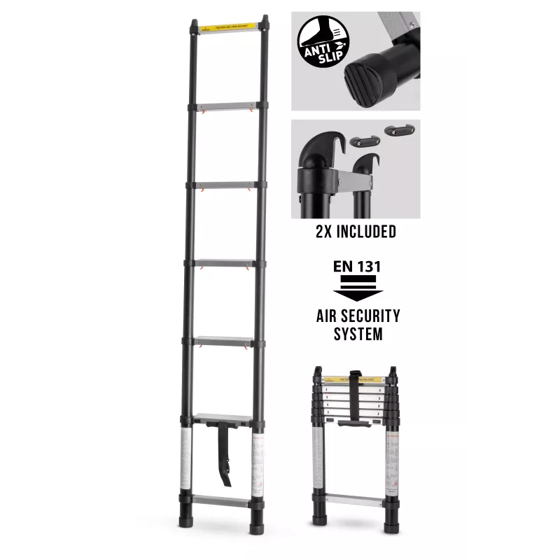 La scala telescopica Brunner Laddy Alcove Air è progettata per offrire comfort, sicurezza e versatilità agli appassionati di campeggio e caravaning. Realizzata in alluminio leggero e resistente, è ideale per accedere facilmente a letti in alcova, tende da tetto o per eseguire manutenzioni sul veicolo. I gradini inclinati si adattano alla forma del piede, garantendo una salita sicura e confortevole anche a piedi nudi. Il design compatto e pieghevole consente un facile trasporto e una rapida installazione, rendendola un accessorio indispensabile per ogni viaggiatore.
