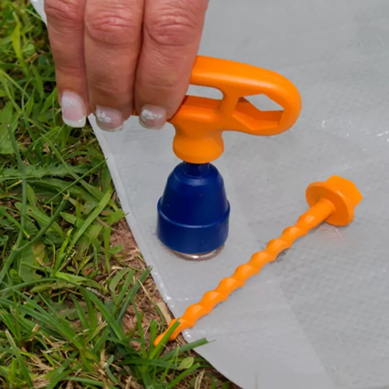 Con questo semplice strumento PeggyPeg Kombi, puoi facilmente avvitare i picchetti a vite PeggyPeg nel terreno.