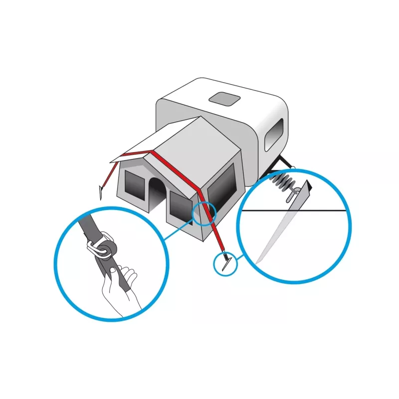 - Compatibilità universale: Lo Stabilizer Kit è compatibile con la maggior parte delle verande per caravan, tende e altre strutture simili, offrendo una soluzione versatile per ogni tipo di esigenza.