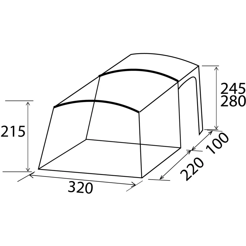 - Dimensioni aperta: 320 x (220 + 100) x H215 cm