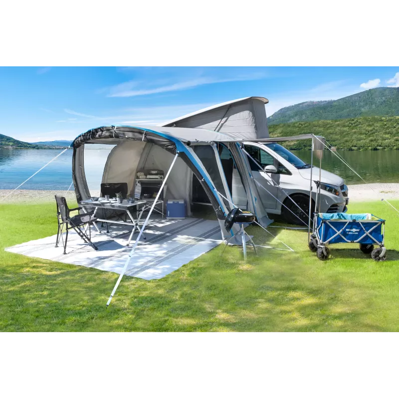 Grazie al sistema gonfiabile A.I.R. Tech Oneflate, basta una pompa per dare vita a una struttura stabile e sicura, senza pali metallici e senza fatica. La veranda prende forma davanti ai tuoi occhi con semplicità, lasciandoti più tempo per goderti ciò che conta davvero: la libertà di viaggiare.