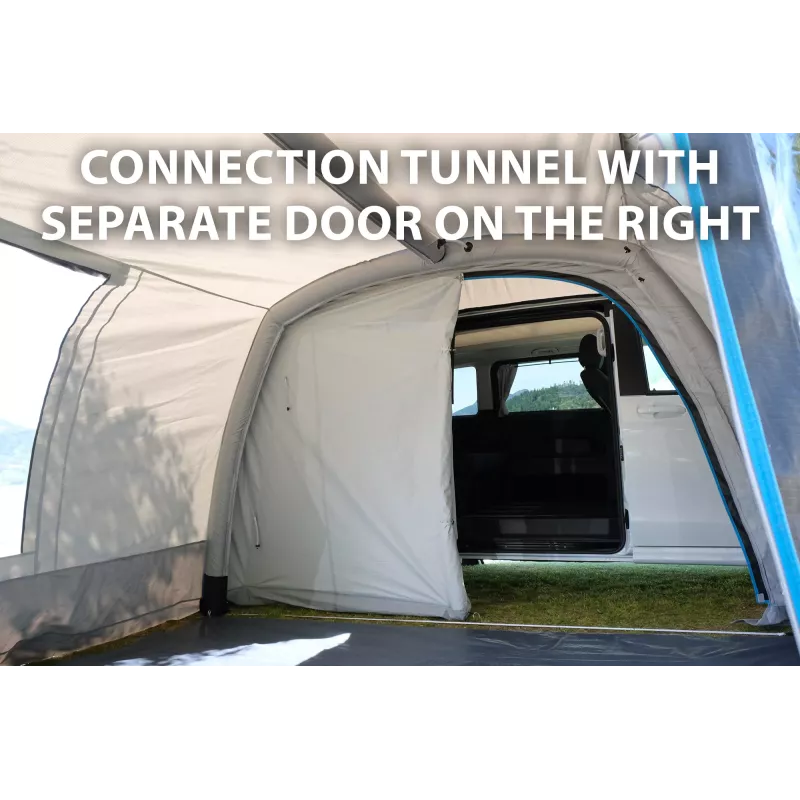 La Air Travel II non è solo una tenda: è un modo di vivere il viaggio. L’ingresso frontale si apre in veranda, creando un’ombra fresca nelle ore calde, mentre la parete posteriore removibile consente di estendere lo spazio come più ti piace. Ogni dettaglio – dall’apertura per i cavi elettrici ai ganci per la lampada – è studiato per rendere la tua esperienza in campeggio ancora più semplice e piacevole.