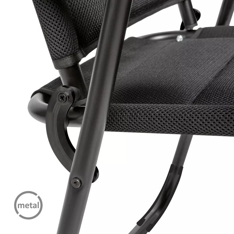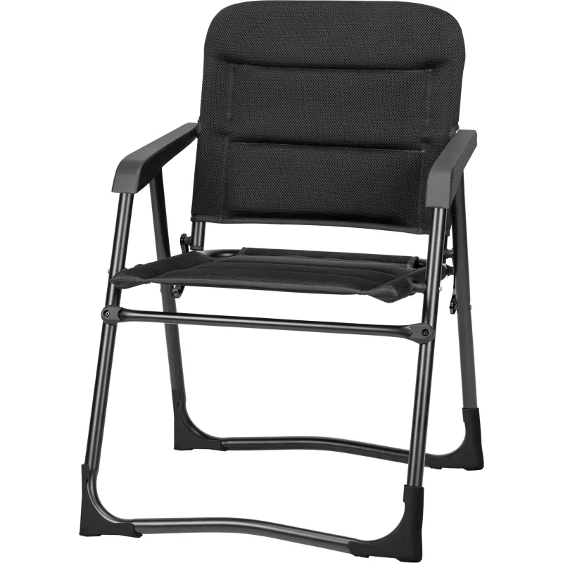 La struttura è costruita in alluminio leggero a profilo speciale, progettata per essere solida e stabile nonostante le dimensioni contenute. La particolarità della Vanchair risiede nelle sue proporzioni: offre una seduta spaziosa e accogliente, ma con uno schienale ottimizzato per essere riposta facilmente nei mobili dei van o nei piccoli gavoni. Il colore Dark Grey le conferisce un look tecnico e moderno che si abbina perfettamente agli allestimenti interni dei veicoli ricreazionali contemporanei.
