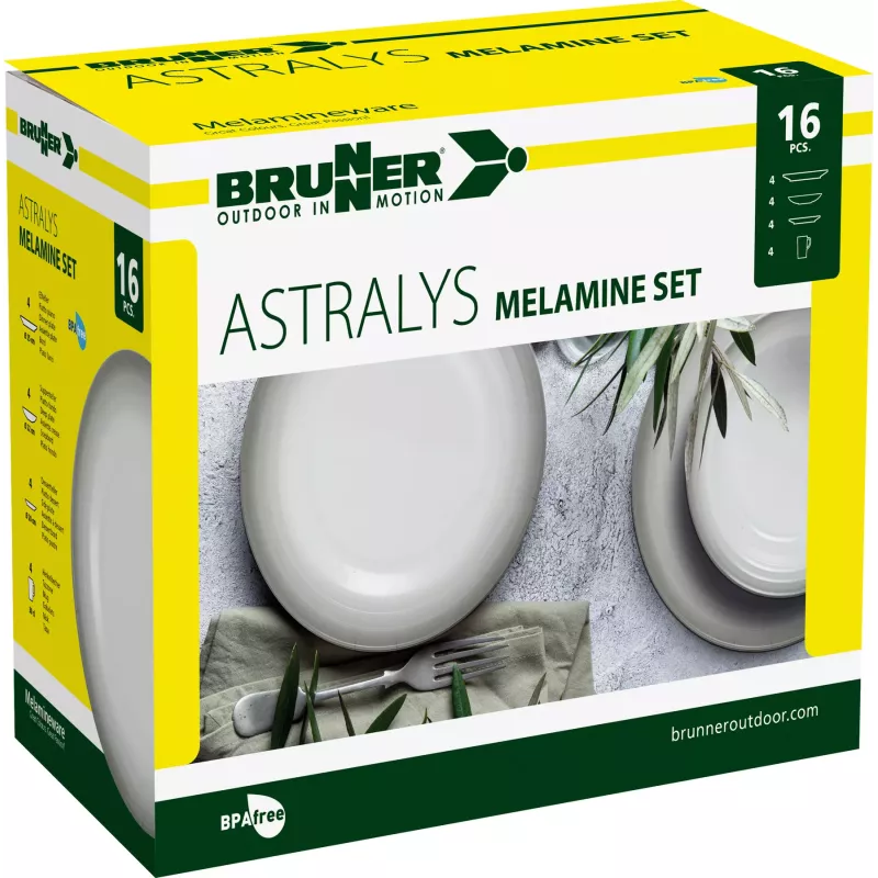 Il set Brunner Astralys offre un design elegante e la robustezza della melamina di alta qualità. Questo set da 16 pezzi è perfetto per chi desidera stoviglie pratiche e resistenti per l'uso quotidiano all'aperto.