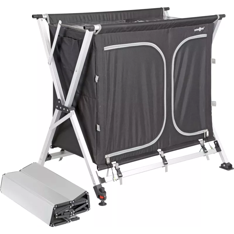 Il Brunner Azabache CT Cross Square è un mobile da campeggio multifunzionale, progettato per offrire una soluzione pratica e compatta per l'organizzazione degli spazi durante le attività all'aperto. Grazie alla sua struttura leggera in alluminio e ai ripiani interni, è ideale per riporre utensili da cucina, stoviglie o indumenti, mantenendo l'area del campeggio ordinata e funzionale.
