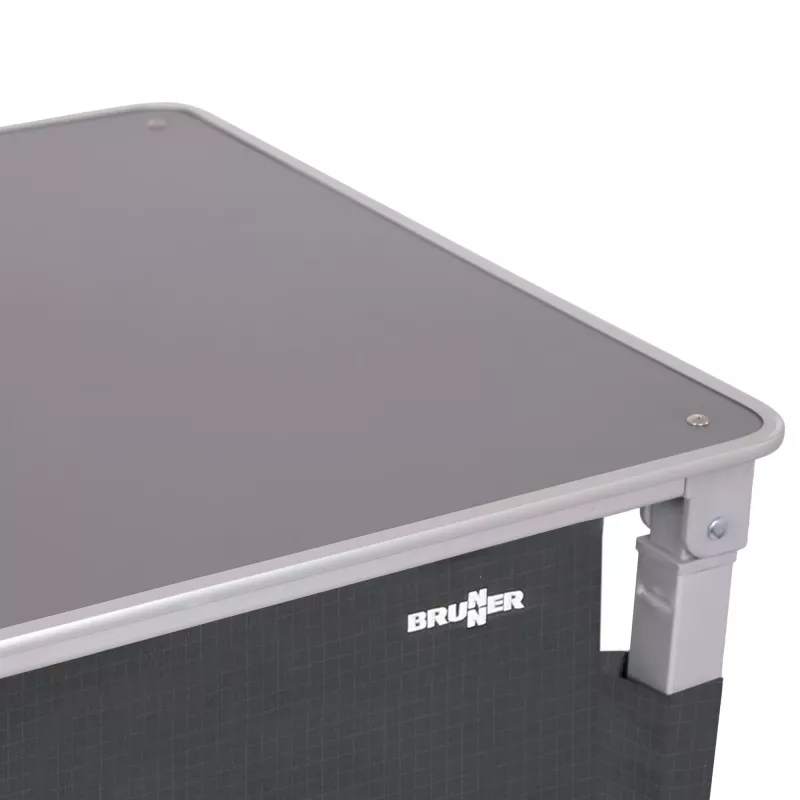Il Brunner Azabache Daily CT è un mobile da campeggio multifunzionale, ideale per l'organizzazione di utensili da cucina, stoviglie o altri accessori durante le attività all'aperto. La sua struttura robusta e pieghevole in alluminio lo rende pratico da trasportare e facile da montare, offrendo al contempo stabilità e resistenza.