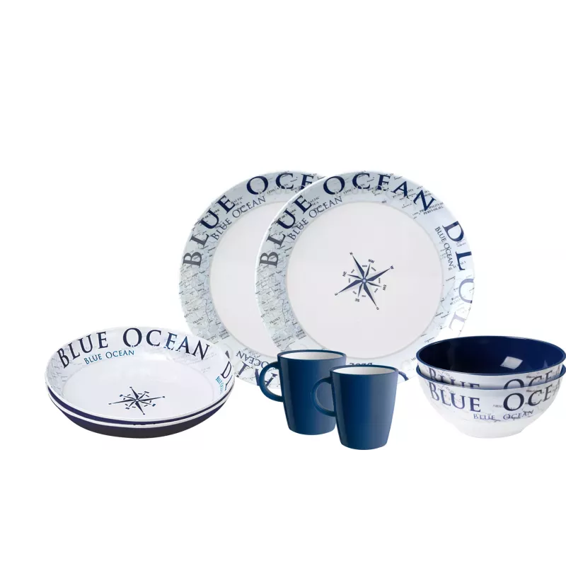 Set Piatti Brunner Tête-à-Tête Blue Ocean – 8 Pezzi in Melamina