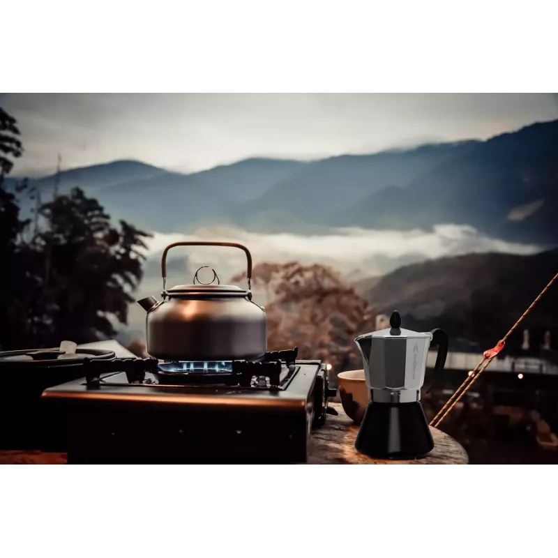 Questa caffettiera è ideale per chi cerca una soluzione affidabile, compatta e completa per la preparazione del caffè in campeggio o in viaggio.