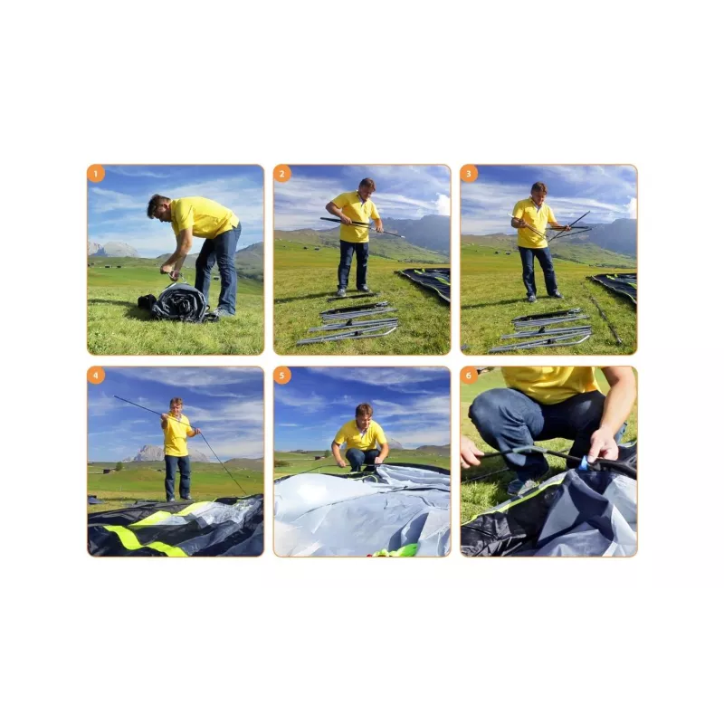 La veranda è compatibile con veicoli aventi altezza di collegamento alla grondaia compresa tra 180 e 240 cm, coprendo un’ampia gamma di modelli. La dotazione di serie è completa e studiata per garantire un montaggio agevole e una struttura stabile: sono inclusi telo esterno, paleria, asta apri-chiusa, corde di tensione, picchetti e sacca custodia.