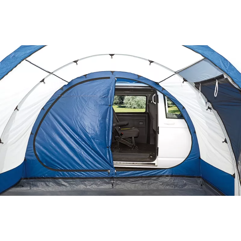 La Brunner Albatros è una veranda moderna e indipendente per minibus, progettata per offrire spazio abitativo aggiuntivo, comfort e grande versatilità durante il campeggio. La struttura autoportante consente un utilizzo pratico e flessibile, adattandosi perfettamente alle esigenze dei viaggiatori itineranti.