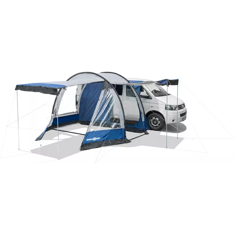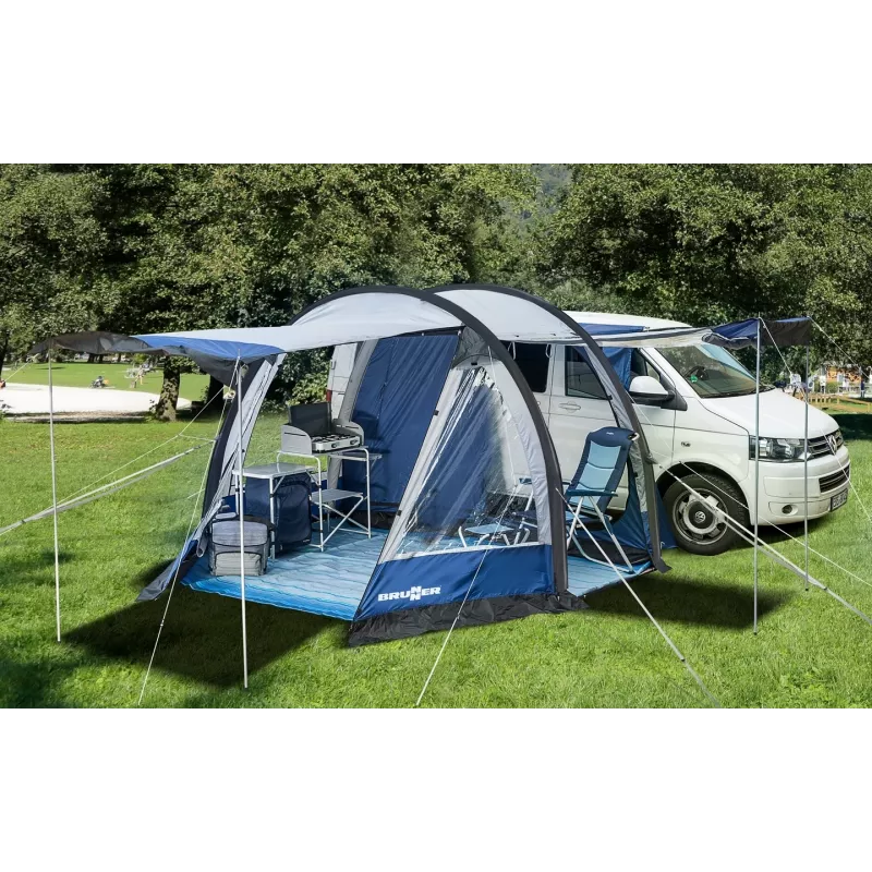 La Brunner Entrada è una veranda indipendente compatta per van, progettata per aumentare in modo semplice ed efficace lo spazio abitativo durante il campeggio. Grazie alle dimensioni contenute e alla struttura funzionale, rappresenta la soluzione ideale per chi desidera migliorare il comfort del proprio van senza rinunciare a praticità e rapidità di utilizzo.