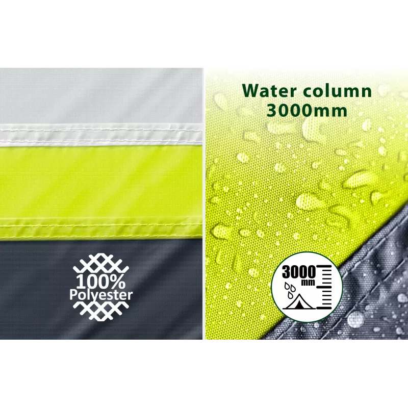 - Accessori di serie inclusi: camera interna, telo con catino, paleria, pali verticali, palo di collegamento, corde, picchetti, sacca custodia