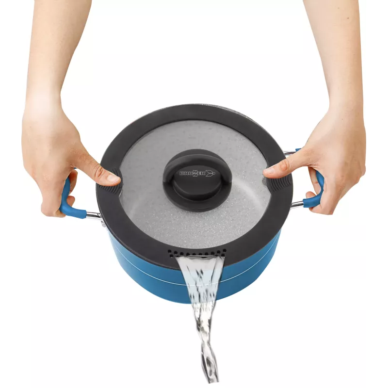 Questo set è ideale per chi cerca una soluzione affidabile, compatta e completa per la cucina in campeggio o in viaggio.