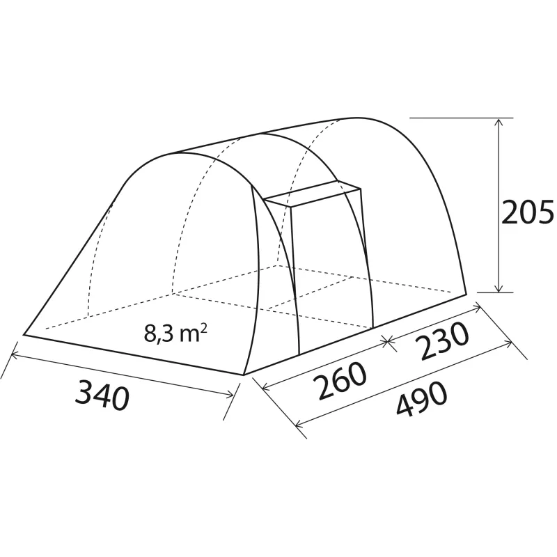 All’interno, la cabina con parete divisoria chiudibile mediante cerniera consente una gestione flessibile degli spazi, mentre il gancio per lampade facilita l’illuminazione della zona notte o giorno. Le cuciture nastrate migliorano la resistenza all’acqua e la durata complessiva della tenda.
