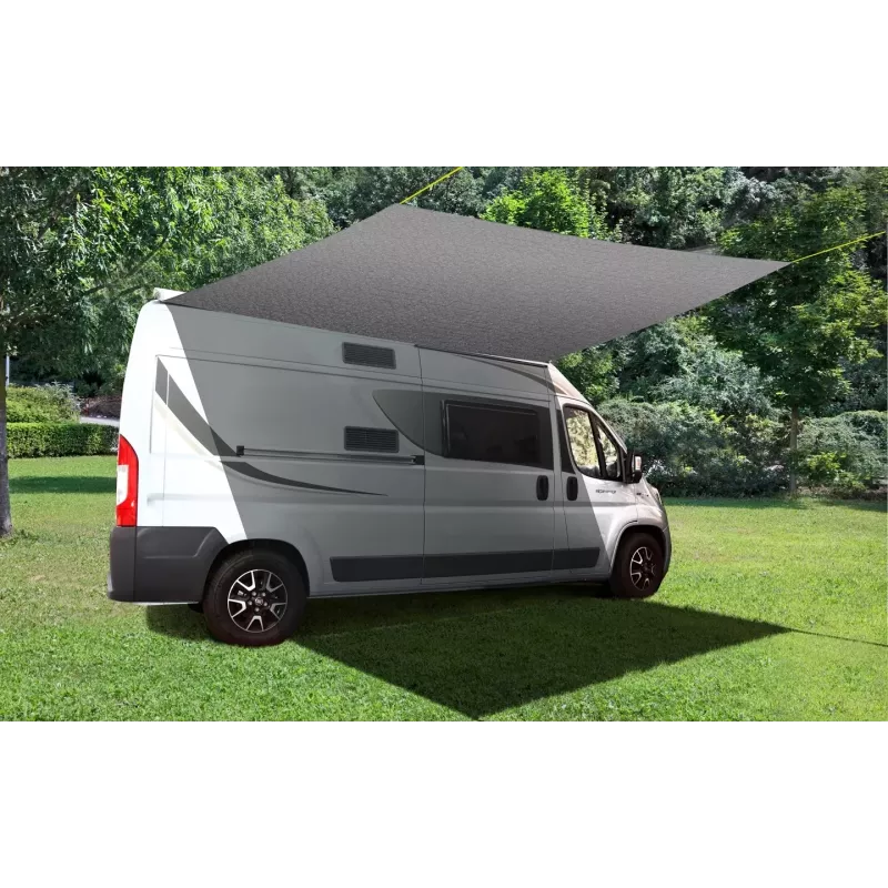 Il Deflector è un pratico parasole universale, progettato per aumentare lo spazio d’ombra all’esterno di camper, van, minibus o roulotte. Si installa facilmente sui profili keder delle verande Fiamma, Thule e Omnistor senza strumenti, offrendo una rapida protezione dall’irraggiamento solare.