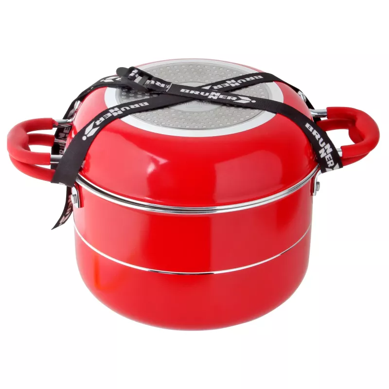 Il Brunner Popote Cosmic 8+2 Ø 22 è un set di pentole da campeggio completo e funzionale, ideale per cucinare in mobilità durante le vacanze in camper, in tenda o nelle aree picnic. Grazie alla sua struttura impilabile e al rivestimento antiaderente di alta qualità, è perfetto per un uso pratico e veloce.