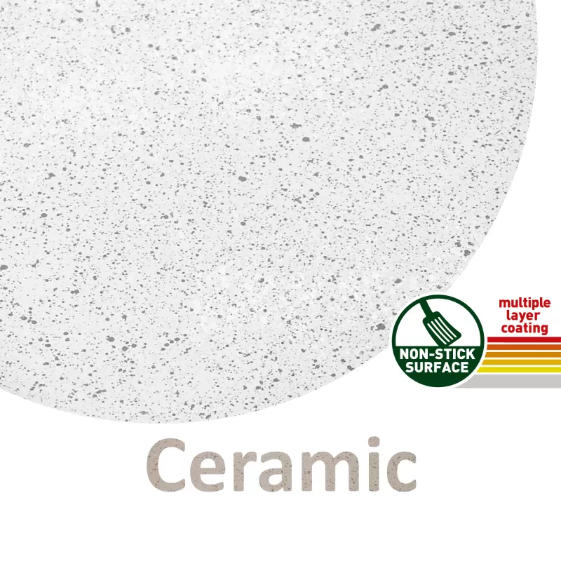 - Materiale: Alluminio con rivestimento antiaderente in ceramica, PFOA-free