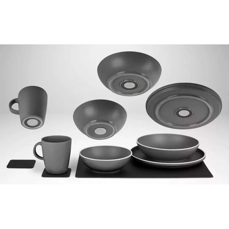 Realizzato in resina melamminica/Stonetouch di alta qualità e resistente agli urti, il set Dolomit combina funzionalità e design moderno. Pensato per chi viaggia spesso e desidera comfort e praticità senza compromessi, il sistema magnetico permette di apparecchiare e sparecchiare rapidamente, mantenendo piatti sempre stabili e ben posizionati.