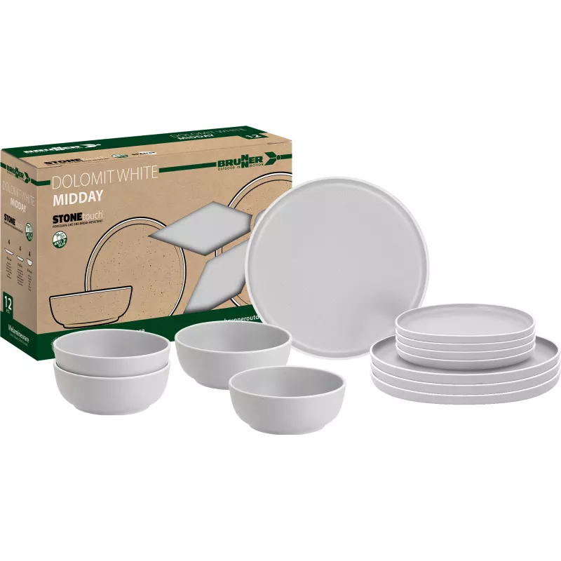 Set Piatti Brunner Midday Dolomit White – 12 Pezzi in Melamina