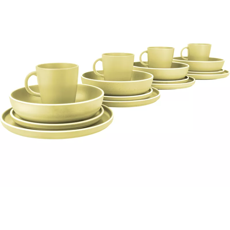 - Design vivace ed elegante: Il colore “Dolomit Yellow” aggiunge energia e stile alla tavola, ideale per chi cerca praticità senza rinunciare a un tocco di allegria.