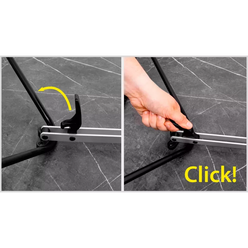 Il robusto telaio in alluminio garantisce stabilità e durata nel tempo, mentre la funzione di ripiegamento facilita lo stoccaggio e il trasporto.