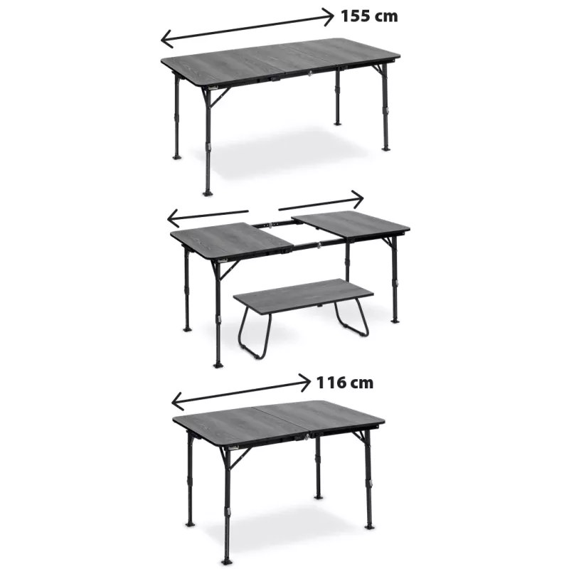 - Dimensioni aperto: 116/155 x 78 x H49,5/80 cm + 39 x 78 x H31 cm (extension)
