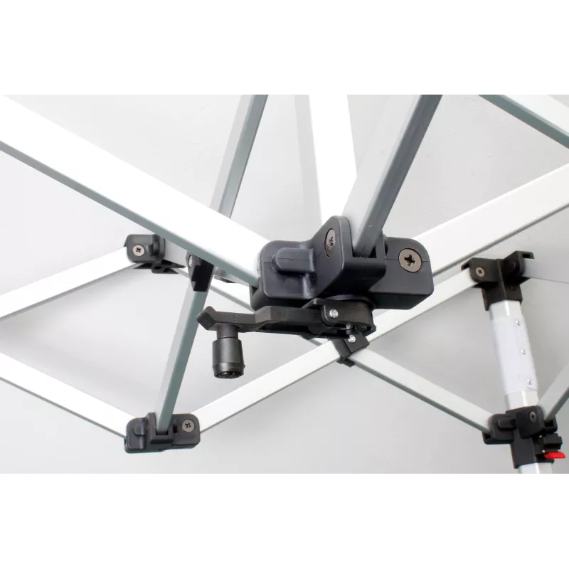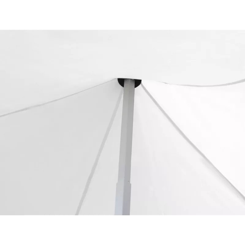 La struttura a montaggio rapido con telaio pieghevole consente un’apertura semplice e immediata, senza necessità di strumenti. Dotato di palo centrale per una massima inclinazione del tetto che favorisce il deflusso dell'acqua. Struttura molto stabile in alluminio con gambe regolabili in altezza. Tetto realizzato in 100% poliestere a spalmatura impermeabile. Cuciture nastrate.