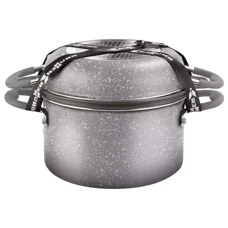 Il Brunner Popote Gourmet Rock NG 9+1 Ø 22 è un set di pentole completo e versatile, ideale per cucinare durante le tue avventure all'aperto. Realizzato in alluminio di alta qualità con rivestimento antiaderente, offre resistenza, durata e facilità di pulizia. Il design impilabile consente un facile stoccaggio e trasporto, rendendolo perfetto per il campeggio e le attività all'aperto.
