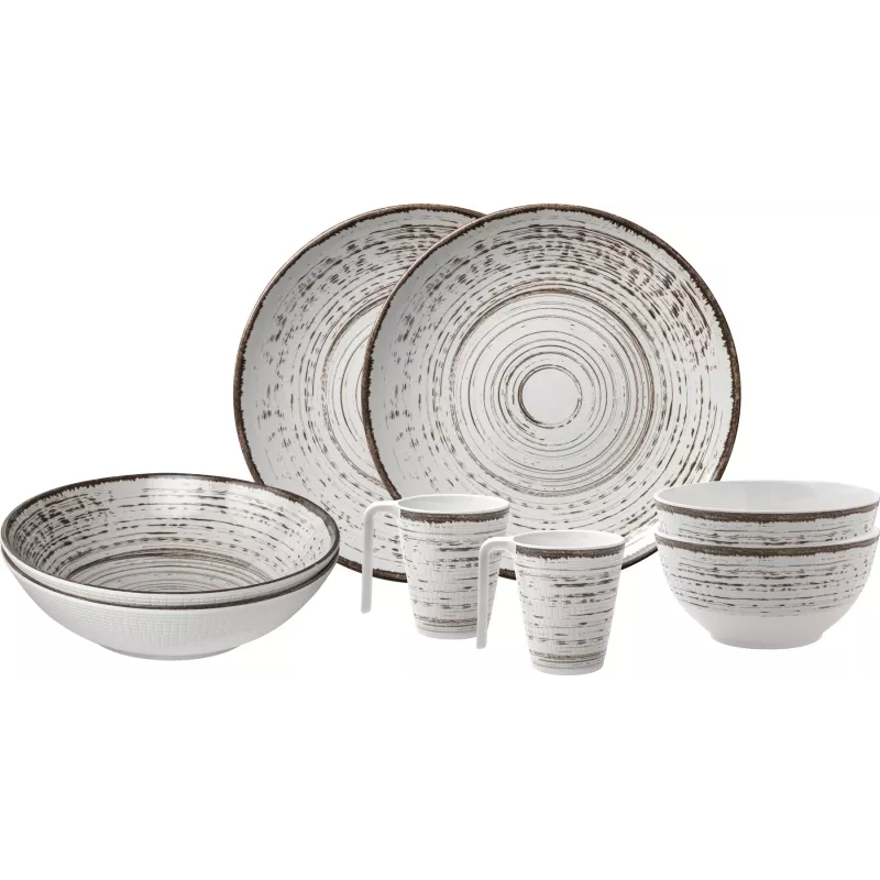 Il set Brunner Tête-à-Tête Kassandra è la soluzione ideale per chi desidera unire eleganza e funzionalità durante le proprie avventure all'aperto. Realizzato in melamina di alta qualità con finitura "Stone Touch", questo set da 8 pezzi offre un design raffinato e una resistenza superiore, perfetto per campeggi, picnic e viaggi in camper.