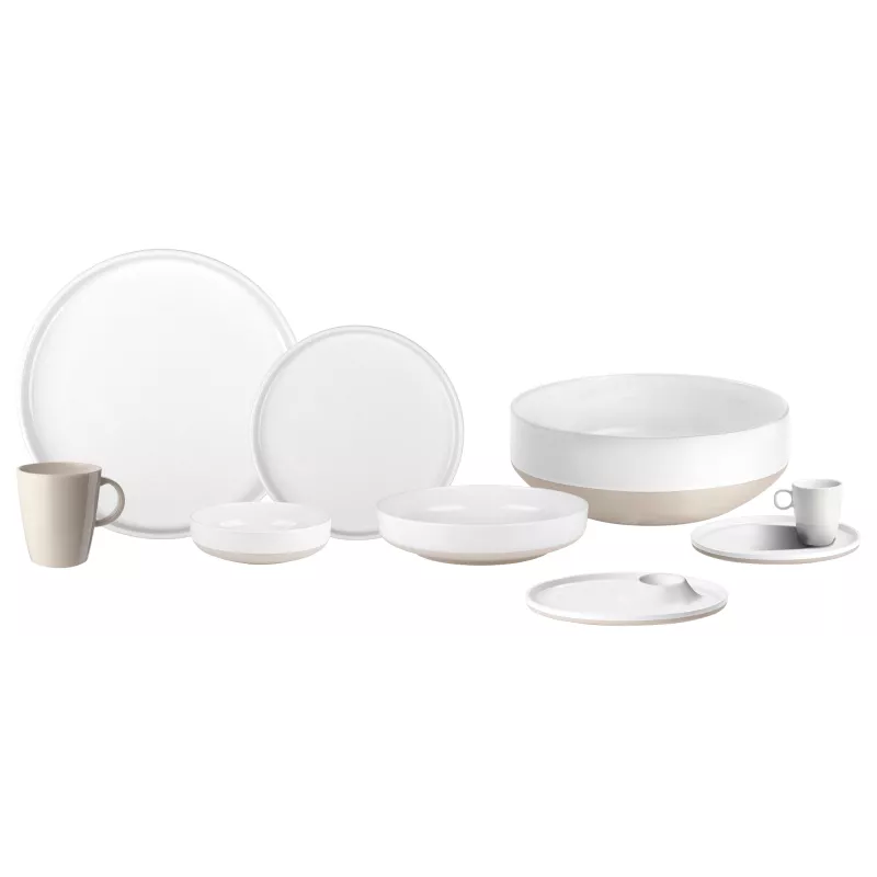 - Materiale: Melamina di alta qualità, finitura “Stone Touch” che imita la porcellana ma garantisce leggerezza, resistenza agli urti e facilità di pulizia.