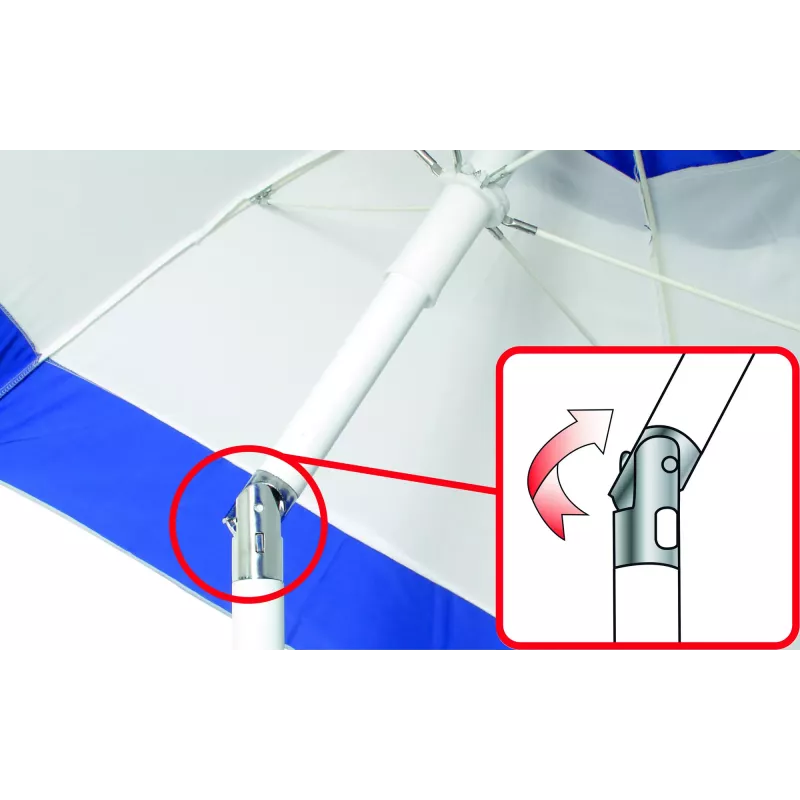 - Snodo in alluminio: permette di inclinare l'ombrellone secondo le necessità, offrendo ombra in diverse angolazioni.