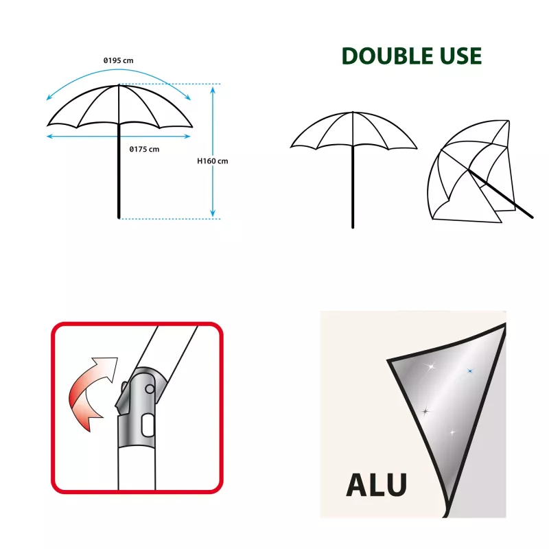 Grazie al suo design intelligente, può essere utilizzato sia come ombrellone tradizionale che come tenda parasole con pareti laterali opzionali.