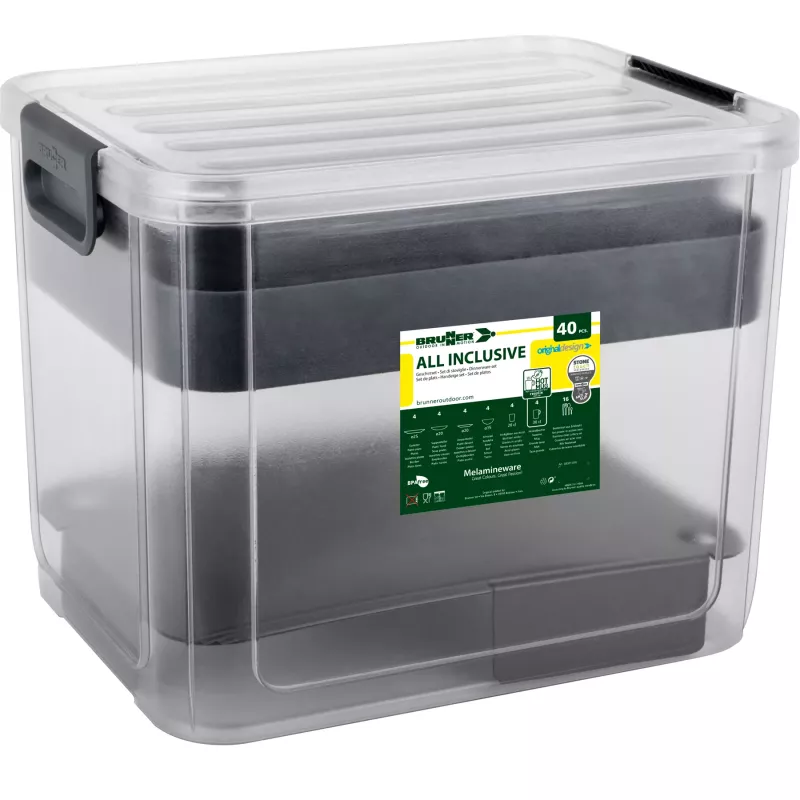 Il set Brunner All Inclusive VIP Pearl è la soluzione completa per chi desidera unire eleganza e funzionalità durante le proprie avventure all'aperto. Realizzato in melamina di alta qualità con finitura "Stone Touch", questo set da 40 pezzi offre un design raffinato e una resistenza superiore, perfetto per campeggi, picnic e viaggi in camper.