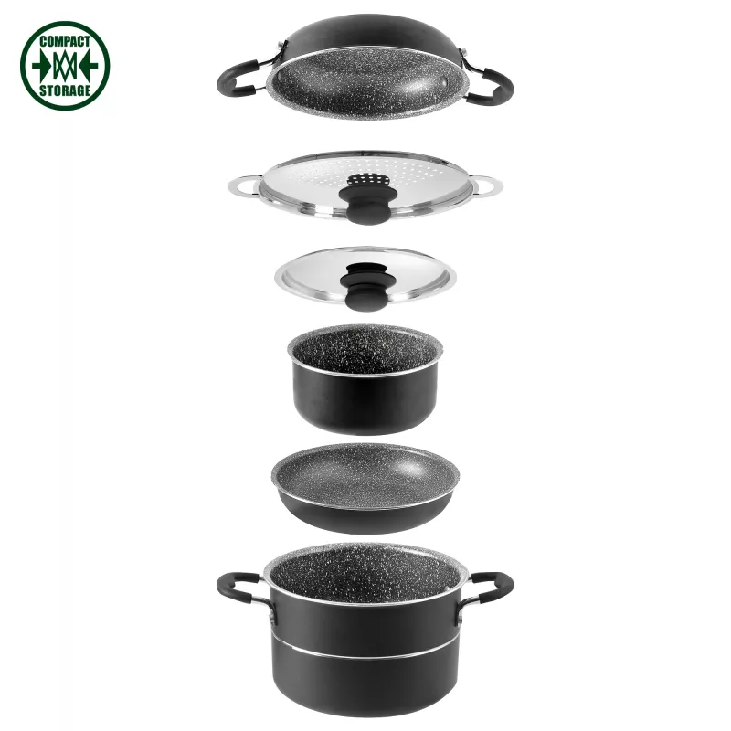 Questo set è ideale per chi cerca una soluzione affidabile, compatta e completa per la cucina in campeggio o in viaggio.