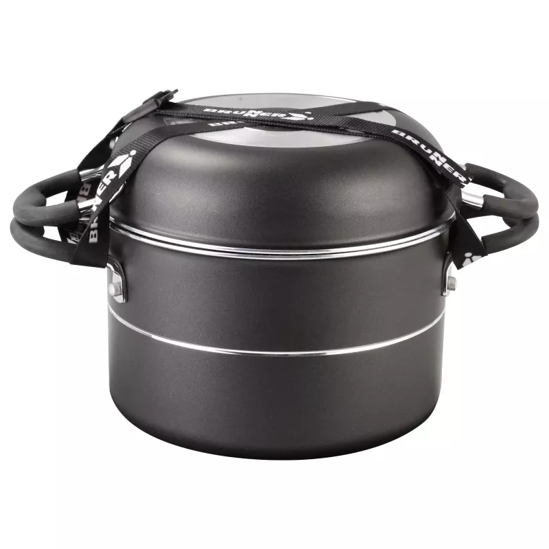 Il Brunner Popote Pirate 7+1 Ø 20 è un set di pentole compatto e leggero, progettato per offrire la massima funzionalità durante le attività all'aperto. Realizzato in alluminio con rivestimento antiaderente, è adatto a tutti i tipi di fornelli, inclusi quelli a gas, elettrici e in vetroceramica.