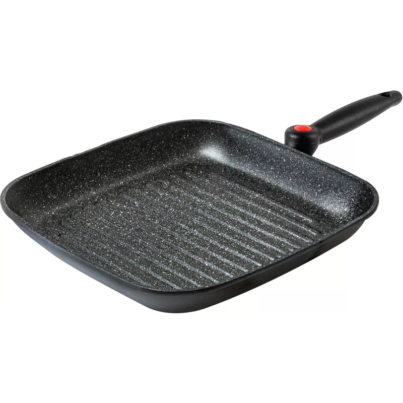 Grazie alla superficie rigata e alla forma quadrata, offre più spazio utile di una padella tonda, permettendo una cottura uniforme e sana di carne, pesce, verdure e panini.