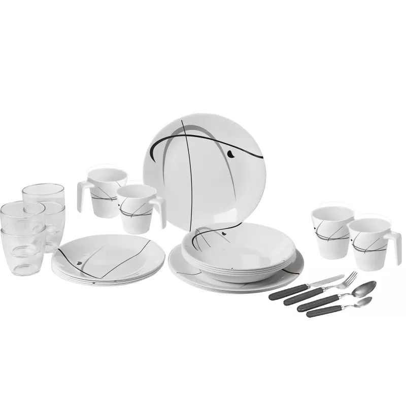 Il set Brunner All Inclusive Serenade è la soluzione completa per chi desidera unire eleganza e funzionalità durante le proprie avventure all'aperto. Realizzato in melamina di alta qualità con finitura "Stone Touch", questo set da 36 pezzi offre un design raffinato e una resistenza superiore, perfetto per campeggi, picnic e viaggi in camper.
