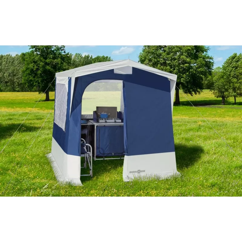 La Brunner Vida NG è una tenda cucina da campeggio con tetto a falde, progettata per offrire comfort e praticità durante le attività all'aperto. Dotata di una porta d'ingresso arrotolabile lateralmente, tre grandi finestre a zanzariera con copertura e un'apertura di ventilazione, garantisce un'ottima circolazione dell'aria. La presenza di una fascia paravento rialzata e la struttura in acciaio Ø 19 mm assicurano stabilità e resistenza. Completa di accessori di montaggio e sacca custodia, è disponibile in due varianti: