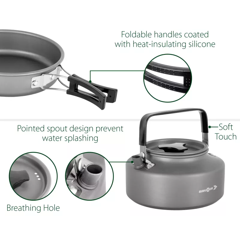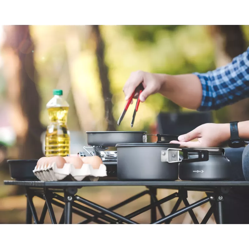 Questo set è ideale per chi cerca una soluzione affidabile, compatta e completa per la cucina in campeggio o in viaggio.