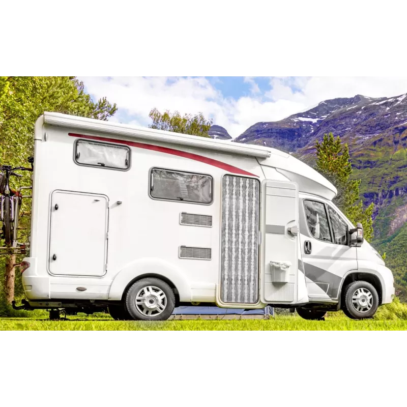 La versatilità è uno dei punti di forza di questo modello, che viene proposto in tre diverse misure per adattarsi a ogni tipo di porta: la versione compatta da 56 x 185 cm (perfetta per le porte dei camper), la standard da 100 x 205 cm e la generosa variante da 120 x 205 cm per gli ingressi più ampi o le verande. L'installazione è rapida e intuitiva grazie al pratico profilo di supporto superiore, che permette di agganciarla e rimuoverla in pochi secondi durante le fasi di preparazione del viaggio.