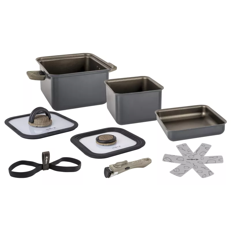 La Brunner Torralta Square è una popote innovativa a forma quadrata, progettata per ottimizzare al massimo lo spazio nelle cucine di camper, van e barche. Grazie al design intelligente e impilabile, questo set di pentole rappresenta la soluzione ideale per chi desidera funzionalità elevata senza rinunciare all’ordine e alla compattezza, eliminando l’ingombro dei tradizionali manici fissi.