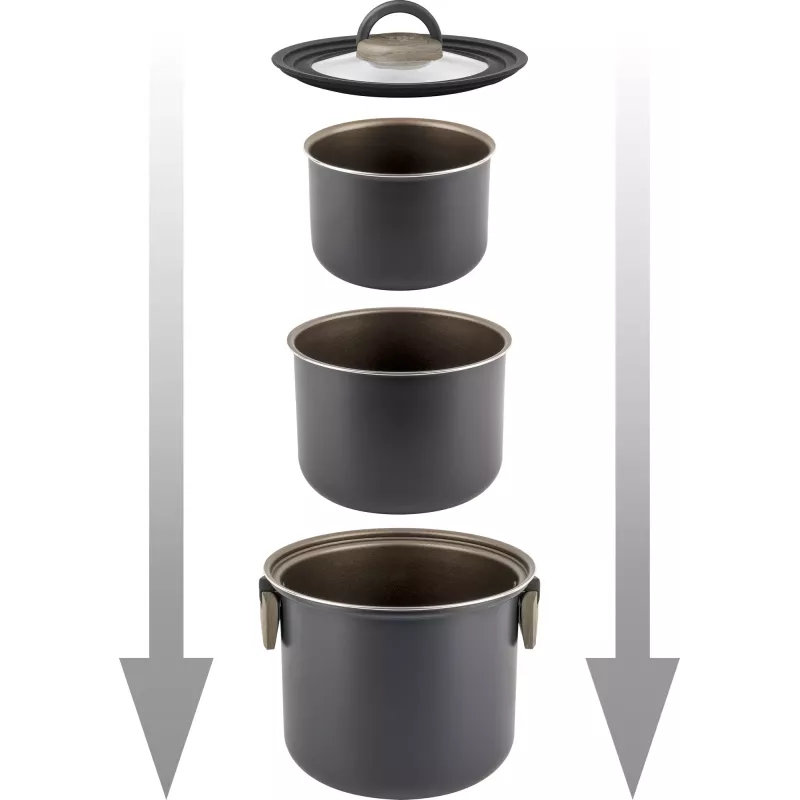 Questo set è ideale per chi cerca una soluzione affidabile, compatta e completa per la cucina in campeggio o in viaggio.