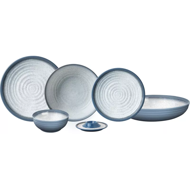 - Materiale: Melamina di alta qualità, finitura “Stone Touch” che imita la porcellana ma garantisce leggerezza, resistenza agli urti e facilità di pulizia.