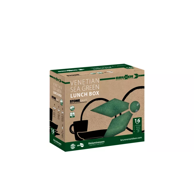 Il set Brunner Lunch Box Venetian Sea Green è la soluzione ideale per chi desidera unire eleganza e funzionalità durante le proprie avventure all'aperto. Realizzato in melamina di alta qualità con finitura "Stone Touch", questo set da 16 pezzi offre un design raffinato e una resistenza superiore, perfetto per campeggi, picnic e viaggi in camper.