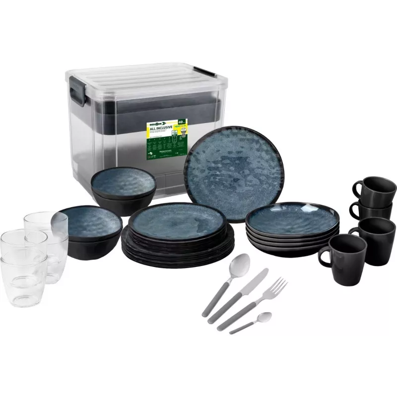 Il set Brunner All Inclusive VIP Venetian è la soluzione completa per chi desidera unire eleganza e funzionalità durante le proprie avventure all'aperto. Realizzato in melamina di alta qualità con finitura "Stone Touch", questo set da 40 pezzi offre un design raffinato e una resistenza superiore, perfetto per campeggi, picnic e viaggi in camper.